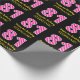 This fun birthday-themed wrapping paper design features a large number "81" with a light pink and dark pink stripes pattern, along with the message "Happy 81st Birthday,", and a customizable name. The background is colored black. Birthday themed wrapping paper like this might be used when giving a gift or present in celebration of somebody’s 81st birthday. [~Z0000376]