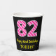 Fun Pink Stripes “82”: Happy 82nd Birthday + Name Paper Cups