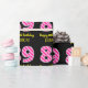 This fun birthday-themed wrapping paper design features a large number "89" with a dark pink and light pink stripes pattern, along with the message "Happy 89th Birthday,", and a personalized name. The background is colored black. Wrapping paper like this might be used when wrapping gifts being given to somebody in celebration of their eighty ninth birthday. [~Z0000376]