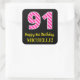 Fun Pink Stripes “91”: Happy 91st Birthday + Name Square Sticker