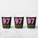 Fun Pink Stripes “97”: Happy 97th Birthday + Name Paper Cups