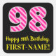 Fun Pink Stripes “98”: Happy 98th Birthday + Name Square Sticker