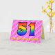 Fun Pink Stripes, Hearts, Rainbow # 51st Birthday Card