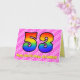 This fun and festive 53rd birthday greeting card design has a front featuring a large number "53" having a colorful rainbow spectrum inspired gradient pattern, on a cheerful dark pink and light pink heart shapes stripes pattern background. The front also features the message "Happy 53rd Birthday,", and an editable recipient name. The inside features a custom birthday greeting message, or could perhaps be cleared and left blank if a message is to be written by hand instead. A personalized birthday card like this might be a fun and happy way of acknowledging somebody’s fifty third birthday. [~Z0000418]