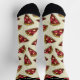 Personalized crew socks for pizza lovers. Treat yourself with these fun garments decorated with a cartoon print of pepperoni pizza slices. The design includes a custom name placed at the very top of the socks.