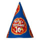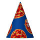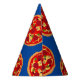 Fun pizza theme Birthday party hats for kids. Cute food design with custom text. Personalize with name and age. Trendy party supplies for children.