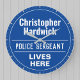 Fun Commemorative Style Wall Plaque Gift in the form of a Wall Clock for a Police Sergeant. Blue and white plaque. Edit the design to change the wording to suit the gift recipient.