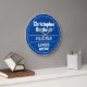 Fun Commemorative Style Wall Plaque Gift in the form of a Wall Clock for a Policeman. Blue and white plaque. Edit the design to change the wording to suit the gift recipient.