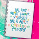 Positive, hand-lettered quote about life and creativity on a soft cover journal...how will you "create yourself"?