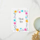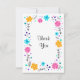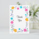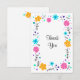 A bright, colorful and cheery thank you flat card with flowers, leaves and twiggy images. A yellow flower adorns the back at the top.