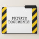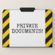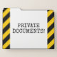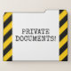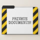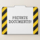 This fun file folder set design features the message "PRIVATE DOCUMENTS!". The background features yellow and black colored warning stripes. [~Z0000265]