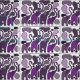 Fun purple elephants with raised trunks abstract art original fabric design.
