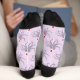 Fun animal Christmas socks Christmas pattern of smiling, purple, octopus illustrations wearing Santa hats on a purple background. Simply add them to your cart, get them home, then add the joy of octopus to your already fun Christmas!