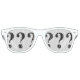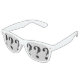 White party glasses with question-mark lens.