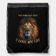 Fun Quote "I Love My Cat" Custom Drawstring Bag in gold text on black background and a lions head as your cat. Customize this bag with your name or preferred text and make it unique to yourself..