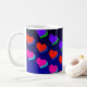 A cute vintage retro aesthetic rainbow hearts retro multicolor pattern totally eighties retro style fun multicolor illustrated colorful black background illustrated deluxe ceramic or travel coffee, tea or hot cocoa mug. Get a cute heart pattern cup today.
