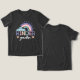 Fun kindergarten grad t-shirt to celebrate the graduate. The design features a bright colorful rainbow and cloud design with the kindergarten grad's name displayed within the rainbow. Fun playful typography design with rainbow letters and stars. Perfect gift for the grad. Design by Moodthology Papery