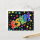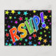 Fun Rainbow Letters "RSVP!" + Stars Pattern Postcard
