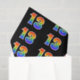This fun, colorful, vibrant tissue paper design features the number "13" with a multicolored rainbow inspired spectrum gradient pattern, on a black colored background. Tissue paper like this might be used when wrapping presents or gifts being given for somebody’s thirteenth birthday, or perhaps for a couple’s thirteenth wedding anniversary, or some other 13th event. [~Z0000331]