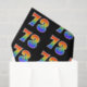 This fun, colorful, vibrant tissue paper design features the number "73" having a multicolored rainbow like spectrum gradient pattern, on a black colored background. Tissue paper like this could perhaps be used when wrapping gifts or presents being given for somebody’s seventy third birthday, or perhaps for a couple’s seventy third wedding anniversary, or some other 73rd event. [~Z0000331]