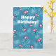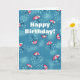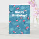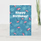 Fun umbrella birthday card with an illustrated pattern made of raining colorful umbrellas in a blue sky with clouds. These umbrellas sprinkle rain drops everywhere instead of protecting from the rain. This weather related card is great for someone who loves rain. It has the customizable text "Happy Birthday!".