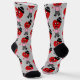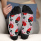 Show your love for her wearing these Fun Red Heart Men's Valentines Crew Socks. This funny design was created from personal art. The socks have a pattern of red heart men dressed up with a bow tie, black hat and boots. He is holding a small heart in his hand. Customizable light grey background. Perfect fashion for Valentine's Day!