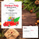 Fun Red Truck White Snow Tree Lights Party Xmas Postcard