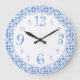 Fun retro pattern clock in crisp elegant blue and white big playful numbers.