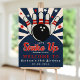 A cute bowling-themed design with a retro style in blue, red, and white with retro details, perfect for celebrating a little bowler's birthday. The design includes space for all your child's party information! Don't hesitate, get yours now!