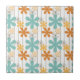 Fun Retro Floral Pattern Orange Blue Wall Flowers Ceramic Tile
