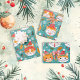 The three sheets are each a bit different, but all from similar retro pattern illustrations. Little orange and white cat faces topped with colorful Santa hats amidst assorted holiday decorative elements. The teal background indicates the set of three will be a compatible grouping for your gift giving. We think the per lovers you know will be happy that they are on your winter holiday list.
