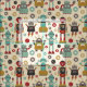 Fun Retro Robots Illustrated Pattern (Cream) Fabric