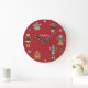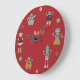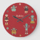 Fun Retro Robots Illustrated Pattern (Red) Large Clock