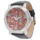 Fun Retro Robots Illustrated Pattern (Red) Watch