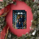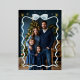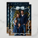Fun Retro Wavy Blue Ribbon & Stars Photo Christmas Foil Holiday Card