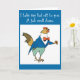Vintage cartoon of a rooster in suit and bow tie holding his hat in hand. Above " I take my hat off to you. A job well done"