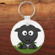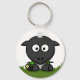 Cartoon round sheep with flower in it's mouth on fun button keychain for kids (or kids at heart)