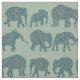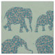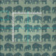 A fun Fabric, with rows of Elephant silhouettes, filled with a dark blue and burgundy Paisley pattern, on a Sage Green background. Part of the Posh & Painterly 'Heffalumps' collection.