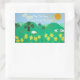 fun scenic illustration of cute sheep rectangular sticker
