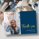 Fun Script Modern Blue Simple Photo Graduation Thank You Card