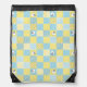 A fun Drawstring Back-Pack, with a Faux Patchwork design of Sheep motifs and patterns in Blues and Yellows, teamed with coordinating Check Ginghams and Polkas Dots.