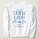 Funny ski bachelorette sweatshirt featuring a drawing of winter mountains, trees, a skier, the humorous saying "up to snow good", and a text template that is easy to personalize.