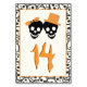 Fun skulls Halloween orange and black wedding table number place card, featuring a black skull couple bride and groom on ivory background and a skull pattern border. The groom is wearing a hat and the bride a bow. This modern and contemporary gothic style wedding template design is perfect for a Halloween wedding.