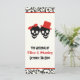 Fun skulls Halloween red and black wedding ceremony and party program, featuring a black skull couple bride and groom on ivory background and a skull pattern border. The groom is wearing a hat and the bride a bow. This modern and contemporary gothic style wedding template design is perfect for a Halloween wedding.