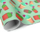 This fun southwest style wrapping paper design features yellow and magenta flowering potted cactus plants pattern on a green background.