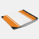 This fun modern design features a wide white center stripe highlighted with floating slender white pinstripes. Adjoining colorful bright orange top and bottom edge racing stripes complete the sporty composition.