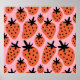 Experience the whimsy of freehand strawberries dancing in a fun and colorful pattern.