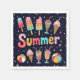 Bright and colorful popsicles, ice cream cones, and refreshing drinks are arranged around the word "Summer," creating a lively and festive atmosphere