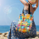 Crafted with meticulous attention to detail, this tote bag features a timeless traditional design that effortlessly captures the essence of summer. The vibrant shades of blues, pinks, yellows, and gold create a stunning visual appeal, making it a standout accessory wherever you go.
