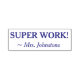 This encouraging rubber stamp design features the positive message "SUPER WORK!" and a personalized educator name. It could be used by a teacher, educator, or tutor when marking assignments, to acknowledge that the student has done well.